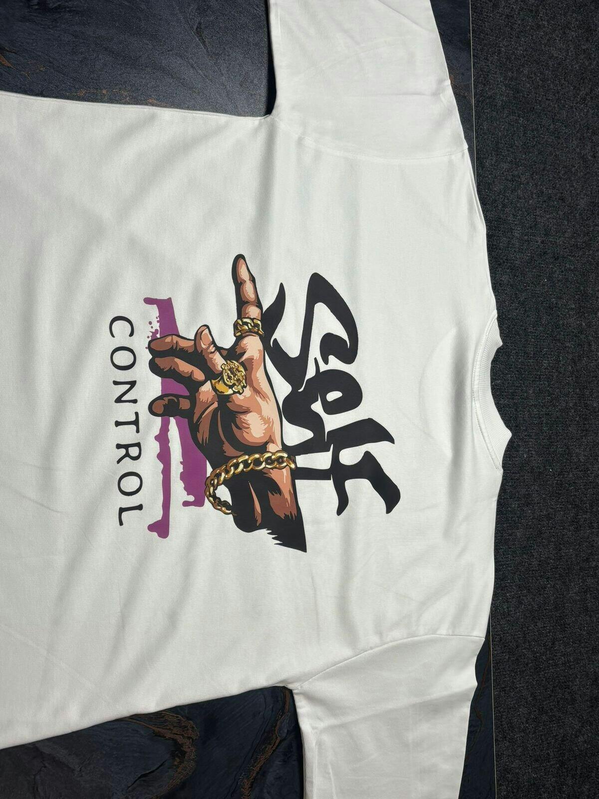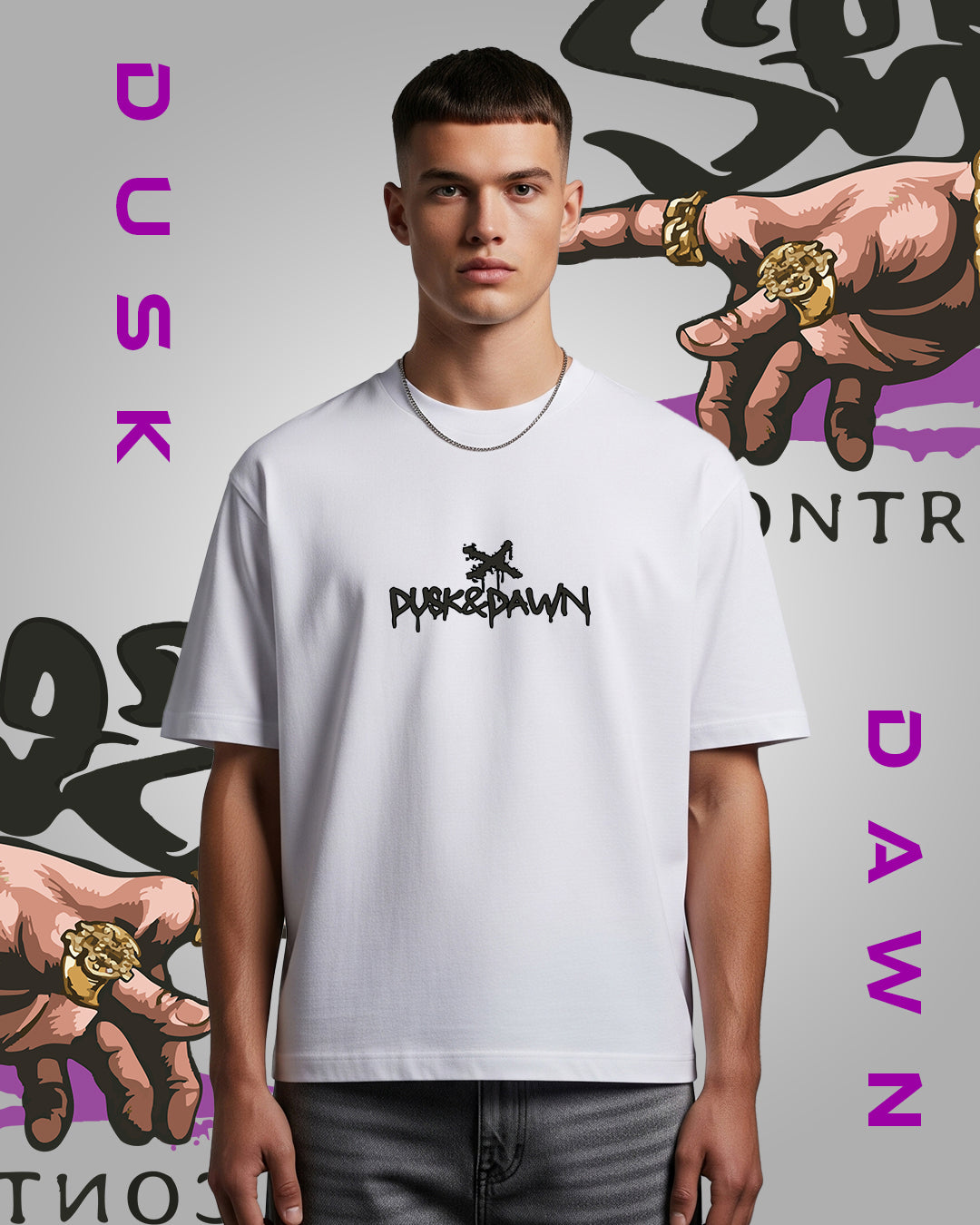 Power in style, control in motion. The Hand of Control T-shirt fuses street authority with artistic expression — featuring a striking graphic of a gold-draped hand pointing forward, layered with bold graffiti-inspired typography. Oversized and crisp in pure white, it’s a piece that speaks dominance with effortless flow.
