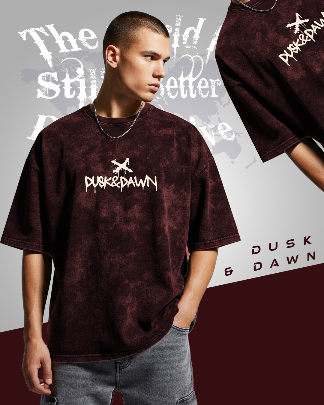 Even in the darkest times, hope refuses to break. The Chained Hope T-shirt speaks of resilience and raw strength — an oversized acid wash piece with bold distressed typography declaring “The world is still a better place to live.” Crafted to embody rebellion and optimism, this tee is for those who carry edge and positivity together.